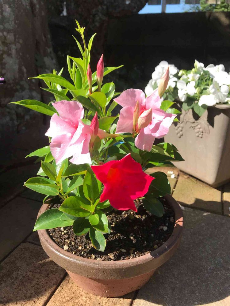 昨夜の雨風カミナリ、非難させればよかったと心配したけど無事でした。レッド開花! ❤️
