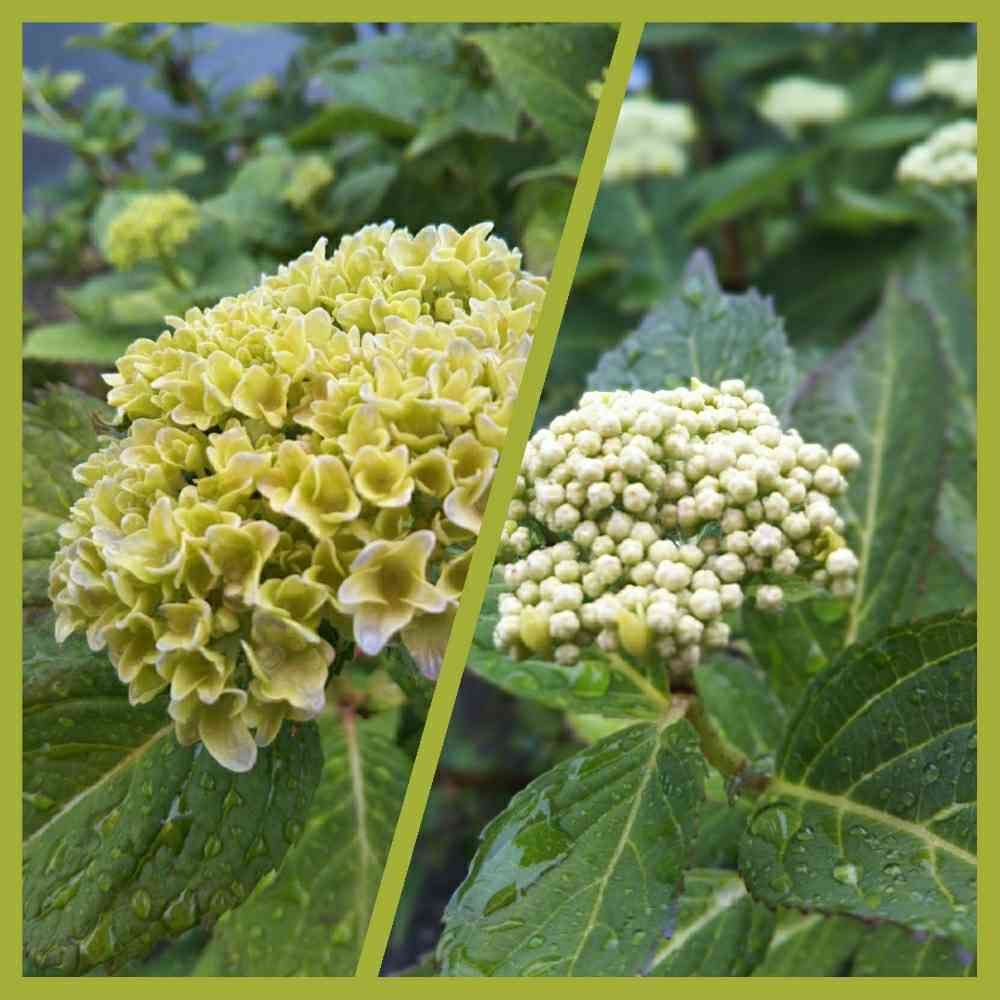 近くの活動センターの花壇に、蕾が付いた紫陽花と咲き始めの紫陽花がありました。