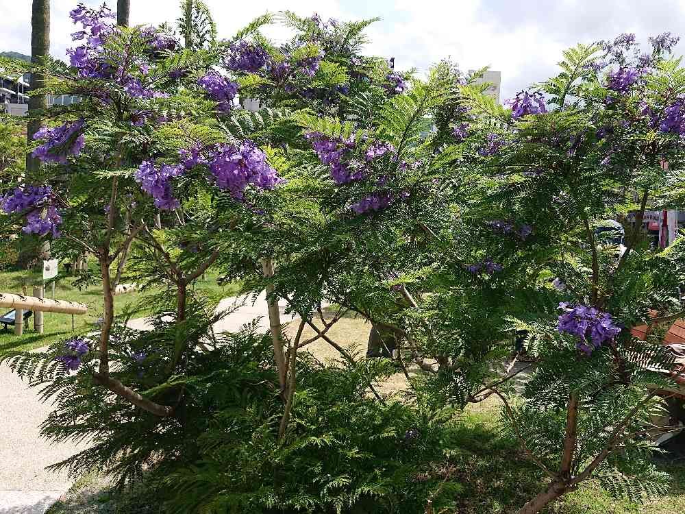 ジャカランダって日本では開花しないって、葉だけの観葉植物扱い苗に書いてあったので日本で咲いてる🇯🇵