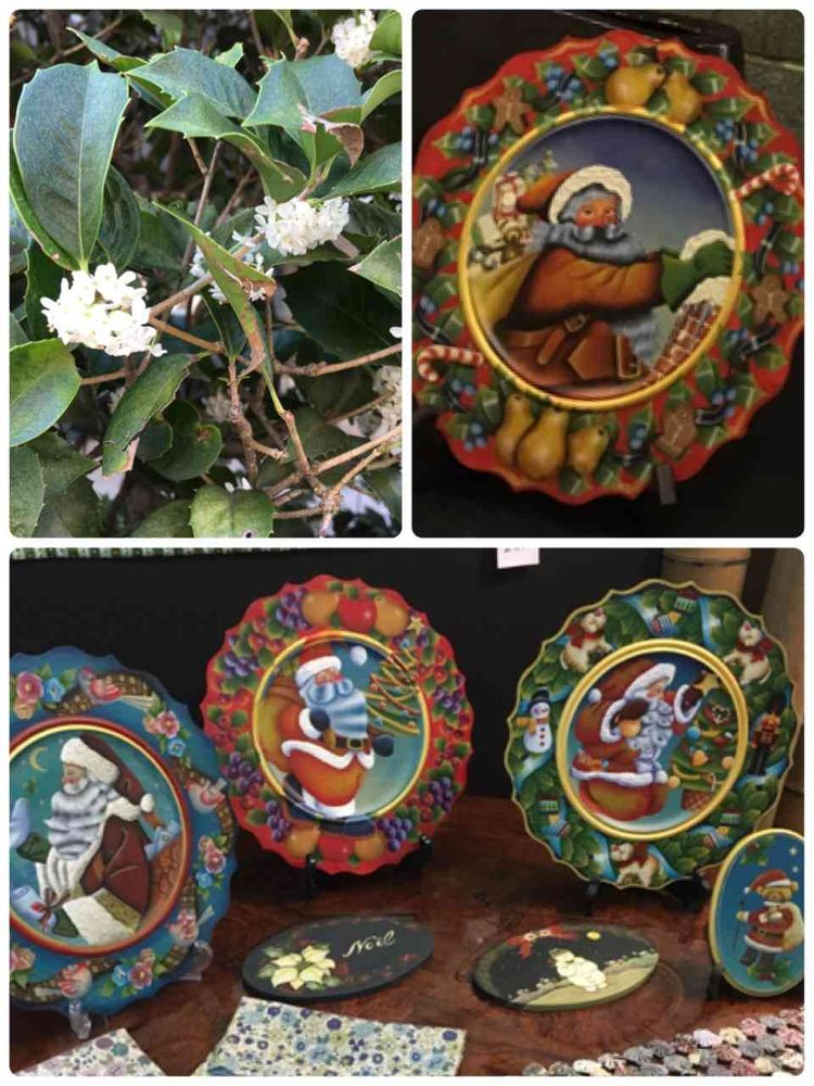 柊の花は10月26日に撮りました。クリスマスプレートはかなり前に描いたものです。世の中は早くもクリスマスムードです。