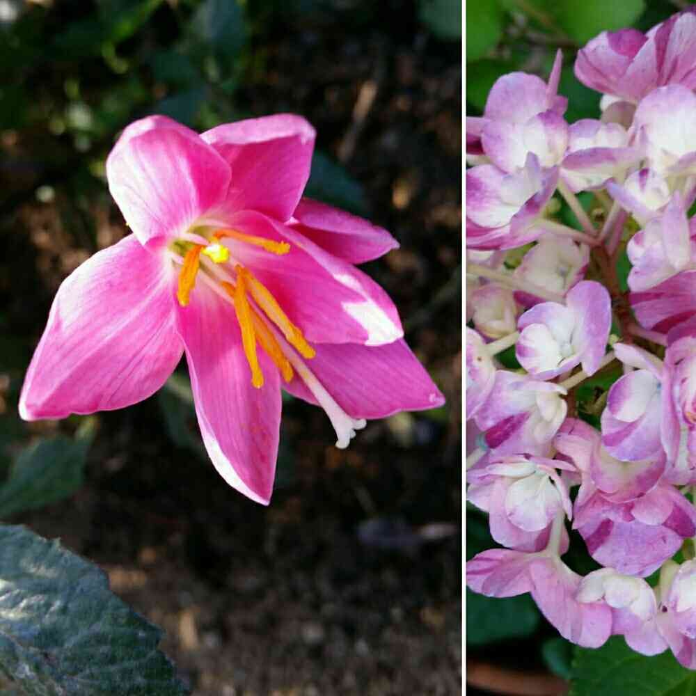 雨上がりの快晴の今日🎵やはりレインリリーが咲いてました😁🌼🌹🌿アジサイの舞姫は小ぶりですが頑張ってます☺
