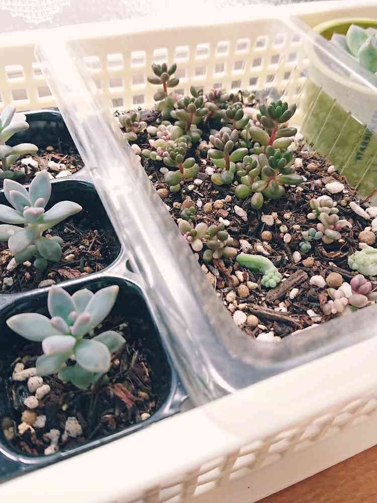 イチゴトレーに入った葉挿しが大きく♪そろそろちゃんとしよう(^^;ちょっと焼けて…ますよね?