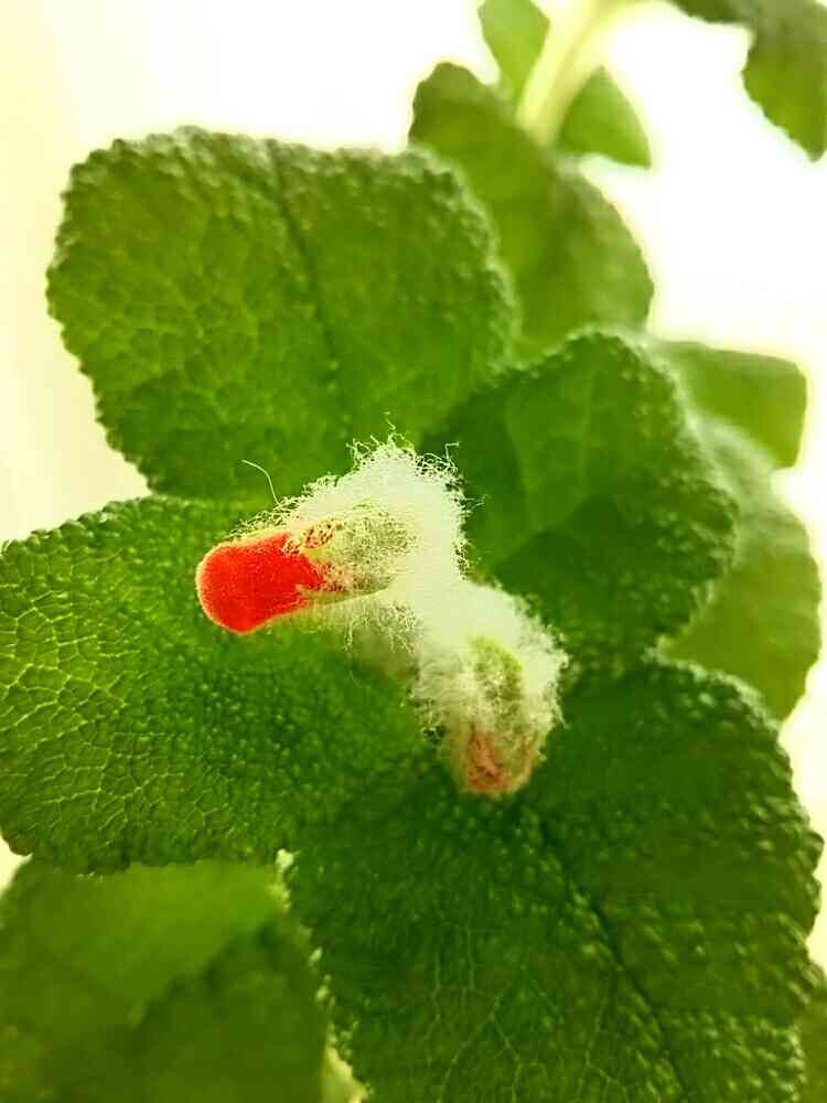 モフモフの毛が可愛いジニンギア花も可愛い色 お芋も 大きくなーれっ💓