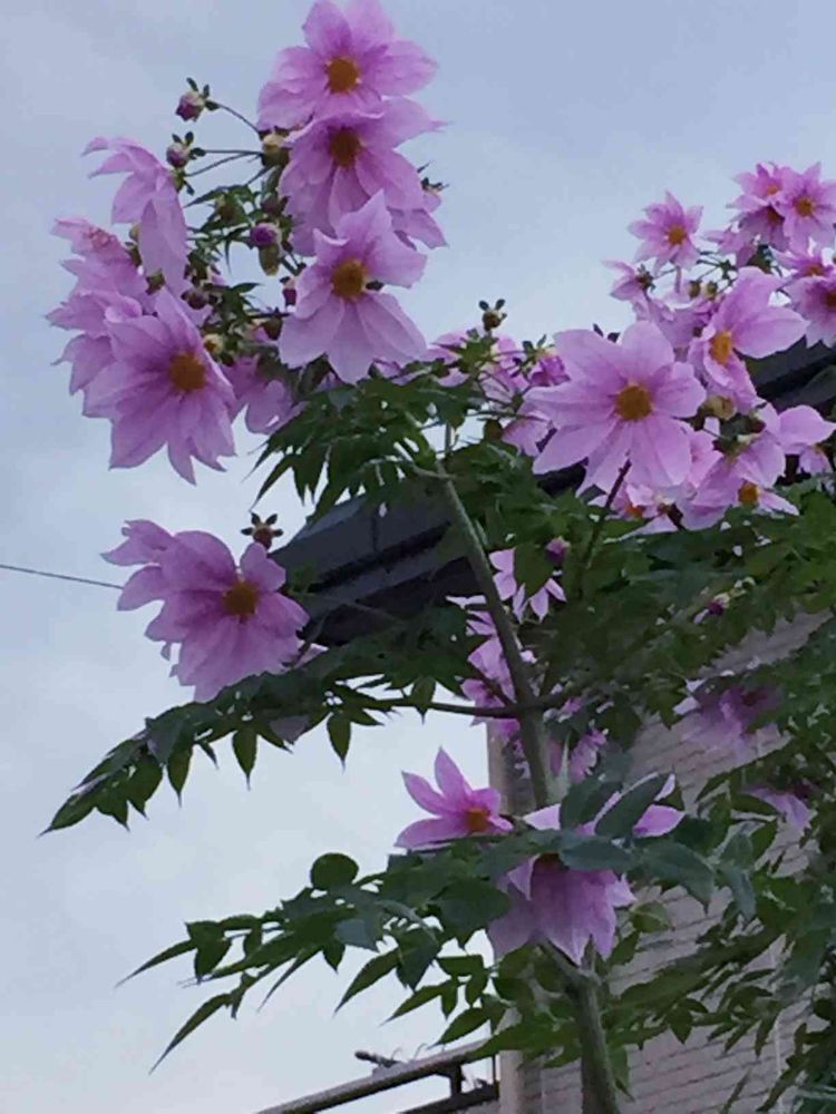 その曇りの中、背高ノッポの皇帝ダリアを発見❣️