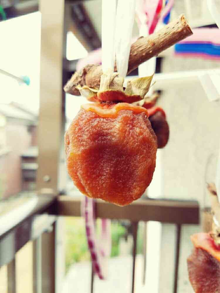 今月の始めに干し柿をつくりましてベランダに吊るしておいたのが