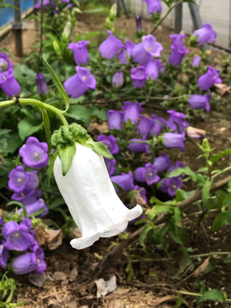 むらさきを従えた白の釣鐘草(カンパニュラ)です!