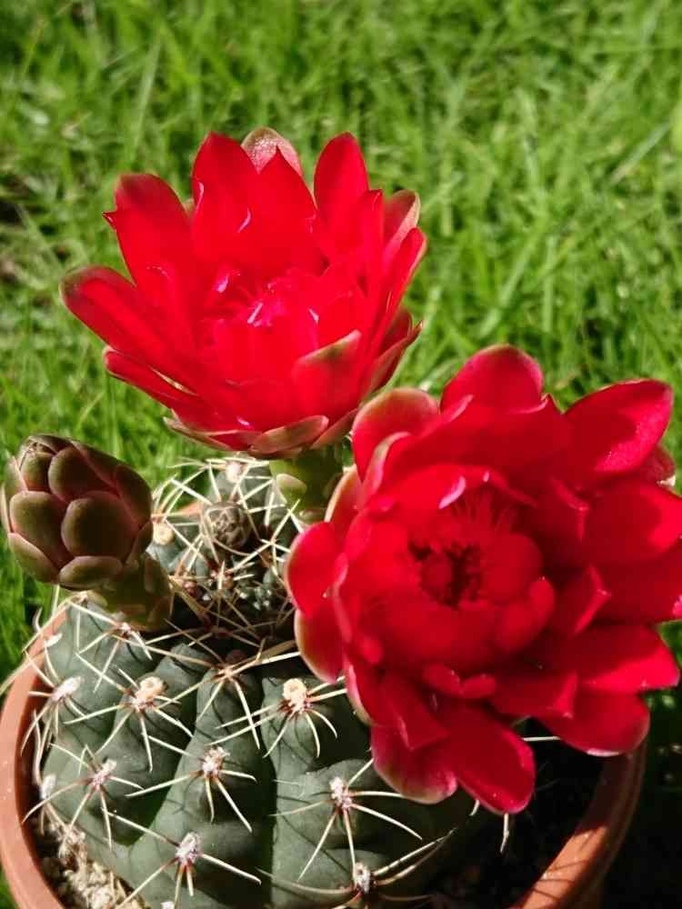 わぁーー綺麗な真紅😍似た様な🌵家にもいる気がするけど‥こんな色の花は我が家では