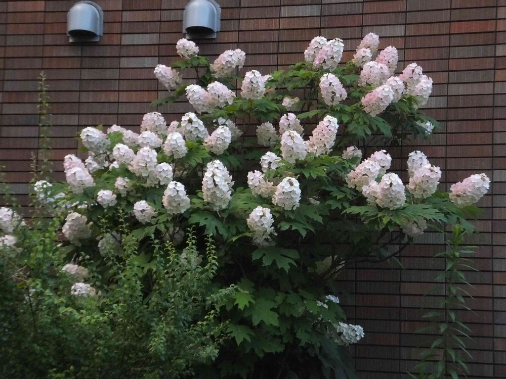 白のかしわで紫陽花が、少しピンクに色づきました。