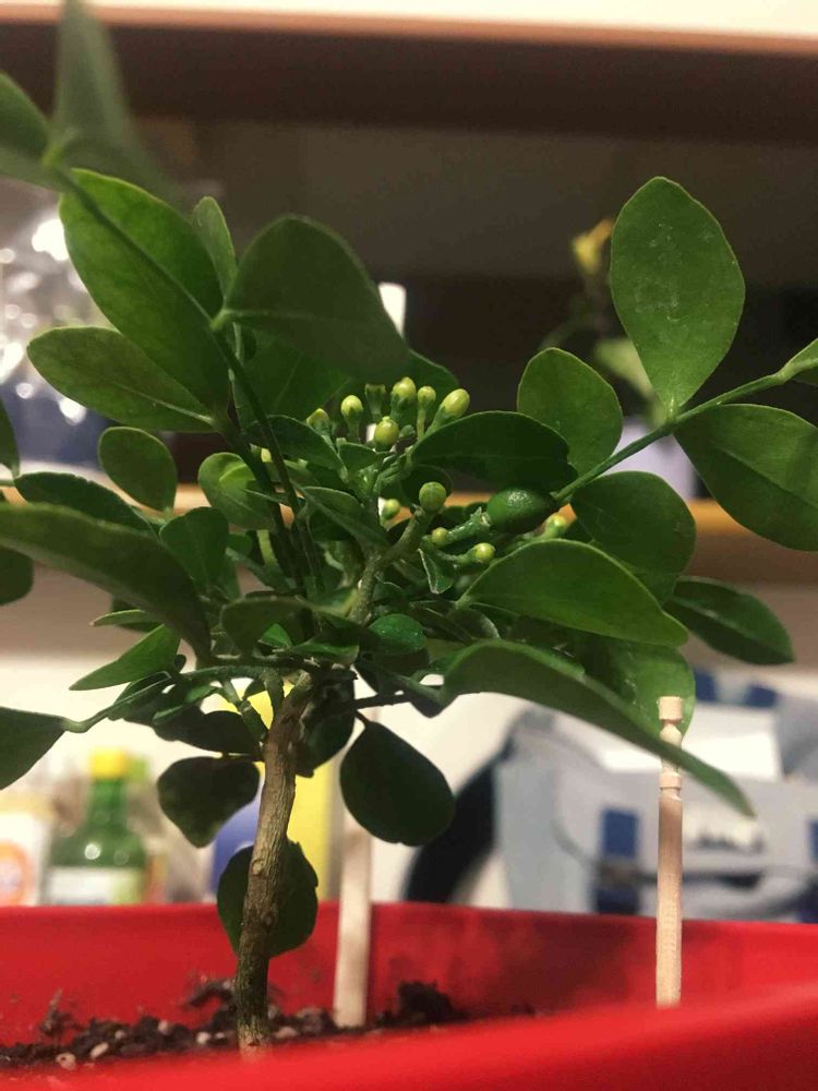 当方も同様の極矮性ゲッキツをしばらく前から育てています。育ててみて、残念ながら個人的に花の芳香は好みではなかったのですが、仰るとおり、このサイズで花が咲き結実することに驚きです。水切れもわかりやすいし、私のような初心者にも育てやすいなと思いました。こちらはしばらく開花はなさそうですが、そちらのゲッキツに美しいお花が咲きますように:)失礼しました。