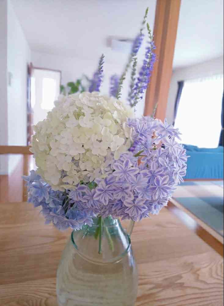 爽やかな気分になったので、私も少し庭いじりをして、お花を生けてみました。