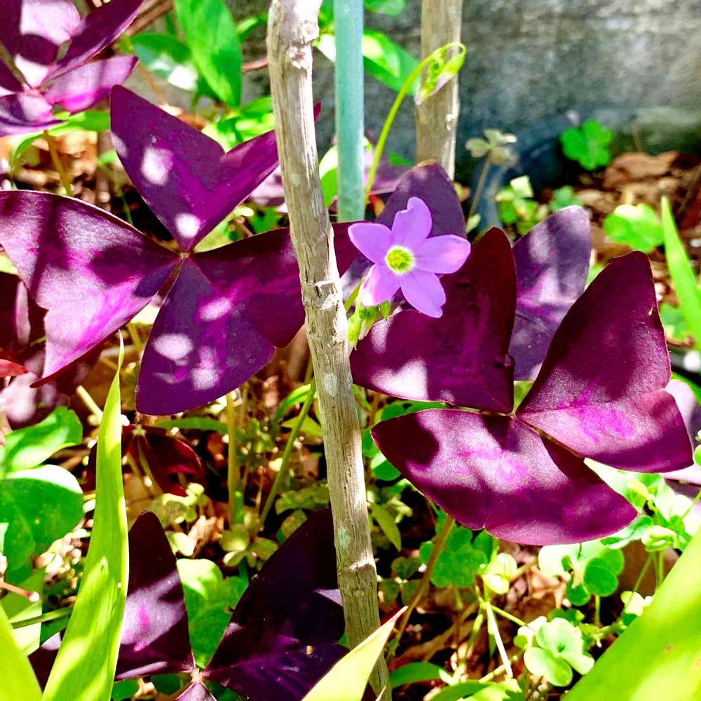 オキザリス葉っぱが紫でピンクの小さいお花が咲きます⑅︎◡̈︎*