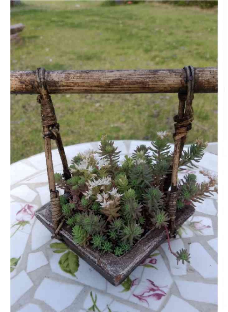 リサイクルショップで¥100で購入したのですが使い方が思い当たらず庭のセダムを植えてみました
