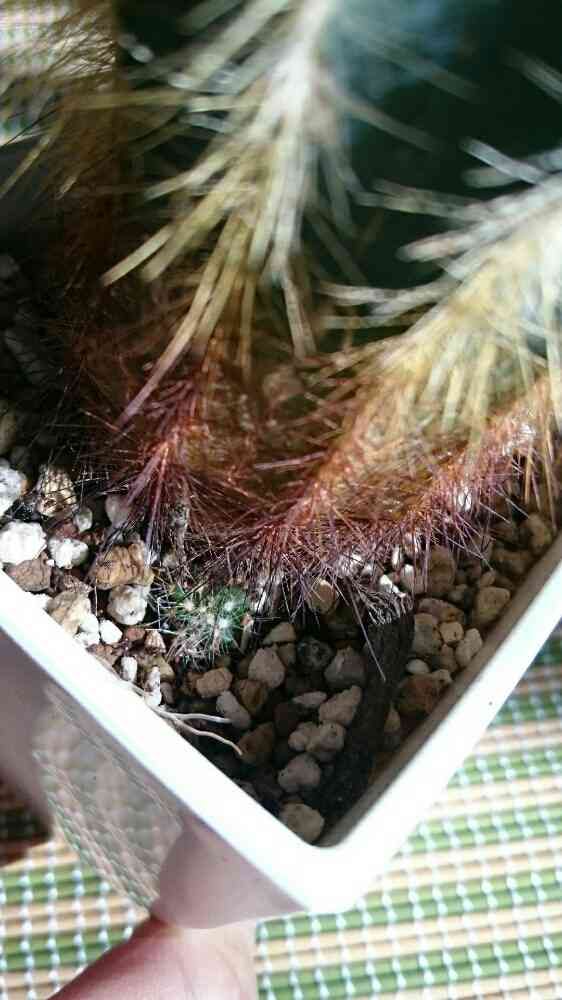 さぼてんの水切れが悪いいくつかを思いきって土替えしました。脇に埋まりながら、顔を出す子を発見!