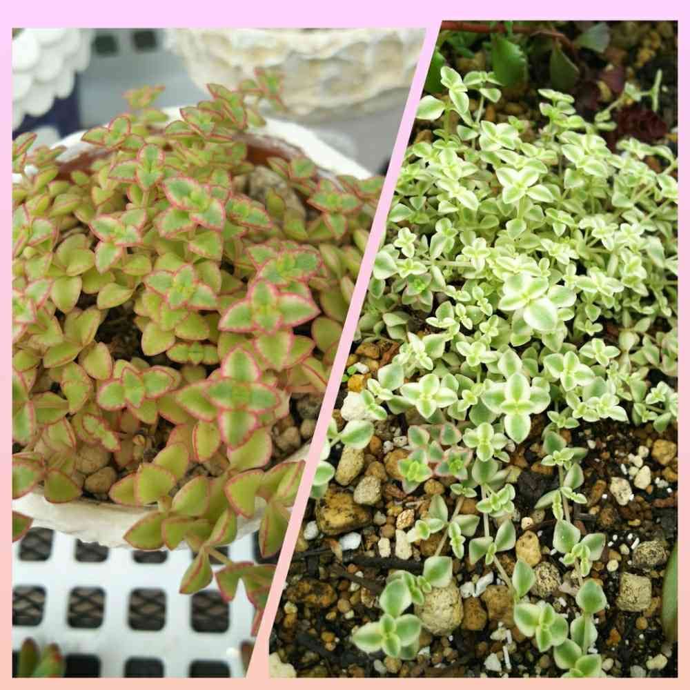 ひとつは多肉花壇に、もうひとつは鉢に植えたんだけど、花壇の方はピンクの縁がほとんどなくなってる~💦