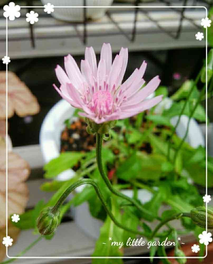 あぶらみちゃんさんからいただいた桃色タンポポが咲きましたよ~💕
