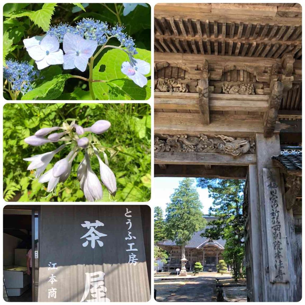 予約無しでは中々買えないあつ揚げさんを求め、おわらで有名な八尾町の又山間部にある豆腐屋さんに行ってきました。店主さんより裏山にある本法寺が、時代劇のロケ地になり、最近では散り椿のロケもあったと聞きつけ、即🚙で登り、坂の途中に、涼しげなギボウシや山アジサイに出会いました