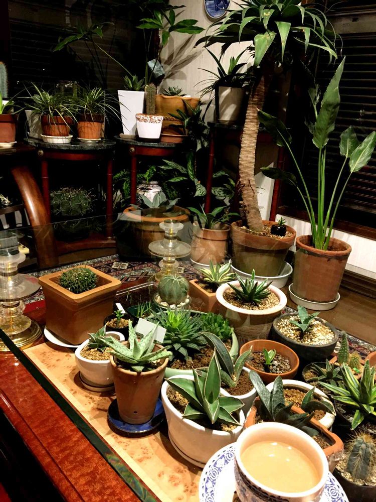 所狭しと並んだ植物の片隅でコーヒーが😆