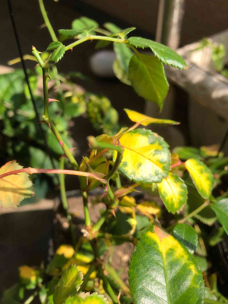 お水が少ないと下の葉から黄色くなって行く時も有りますし…黒星病になっても同じ様に黄色い葉になる時が有ります🤔