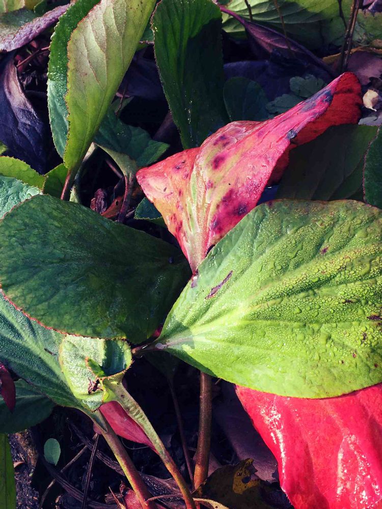 なんて表現して良いか分からない色の葉もヒマラヤユキノシタですよね。