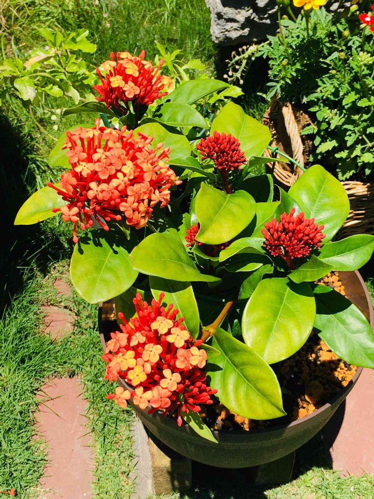 サンタンカの朱色の花が沢山咲いています❤️❤️