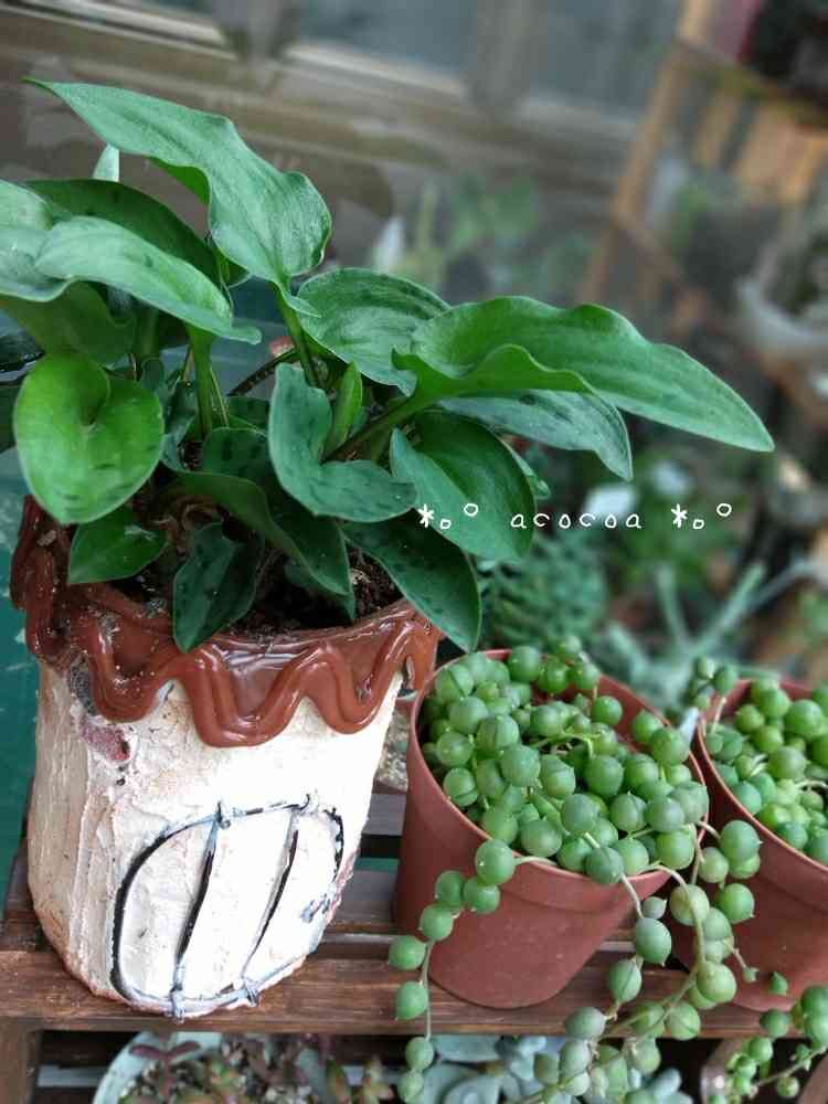チョコチップみたいな感じ?🤗模様があるんですね💕💕素敵ですね〜〜鉢も可愛い!