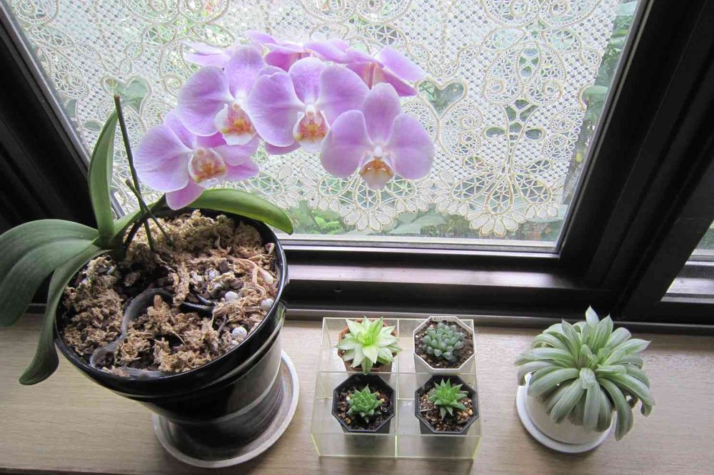 多肉を持ち込んだ、姉の家の出窓。