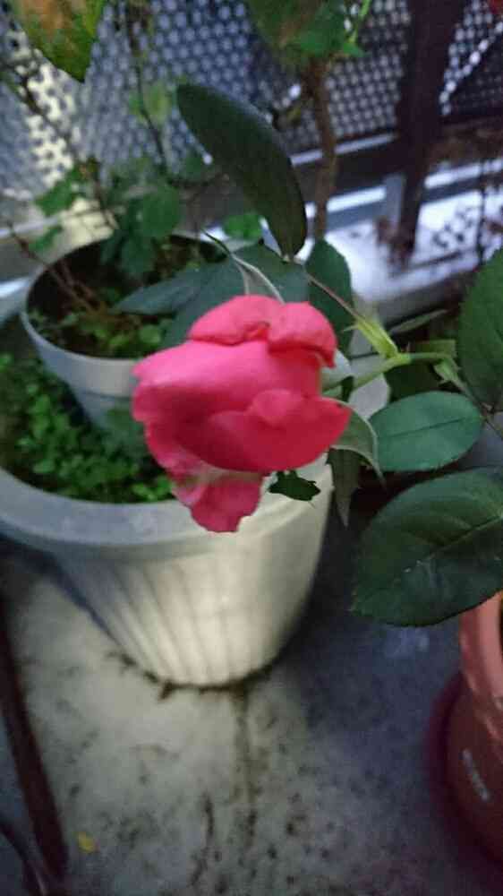 薔薇は、ベランダの下側に少しでも風が当たらない場所
