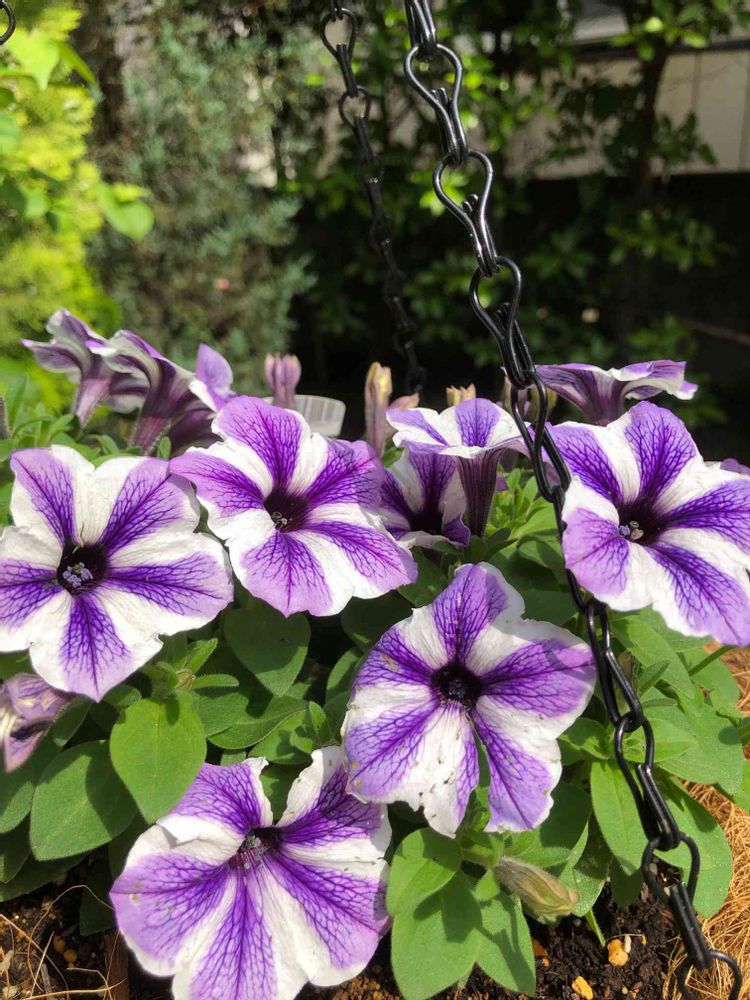 ハンキングバスケットに心地良さげで良く咲いてますネ😍