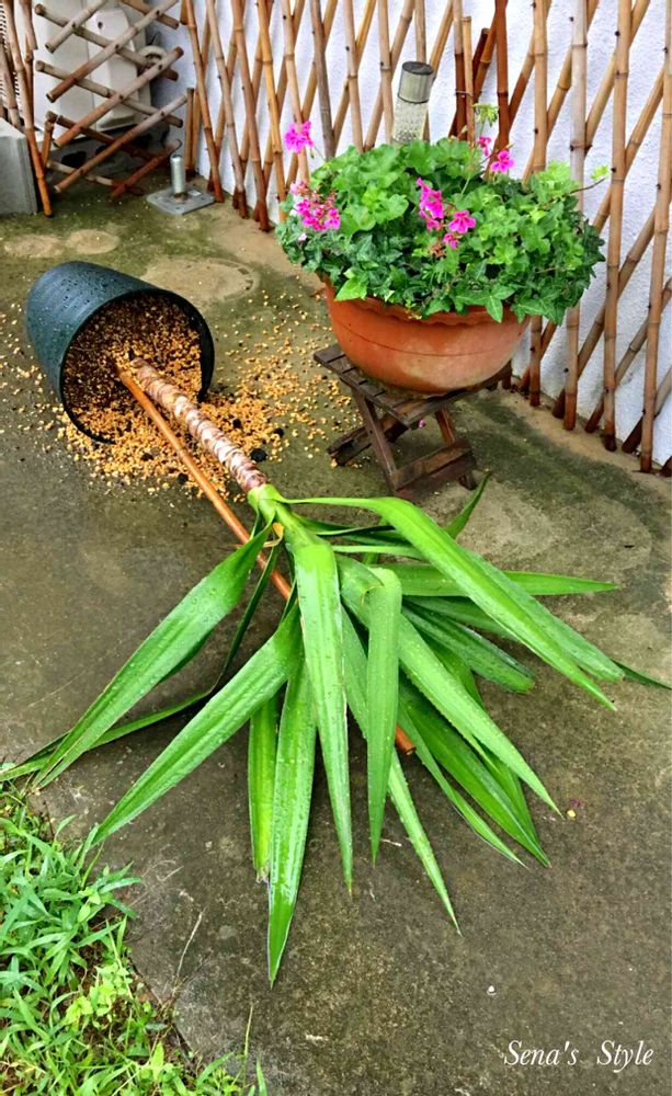 枝も折れ、葉っぱはプラプラと可愛そうな姿😭応急処置して、避難😣😣😣しました😆