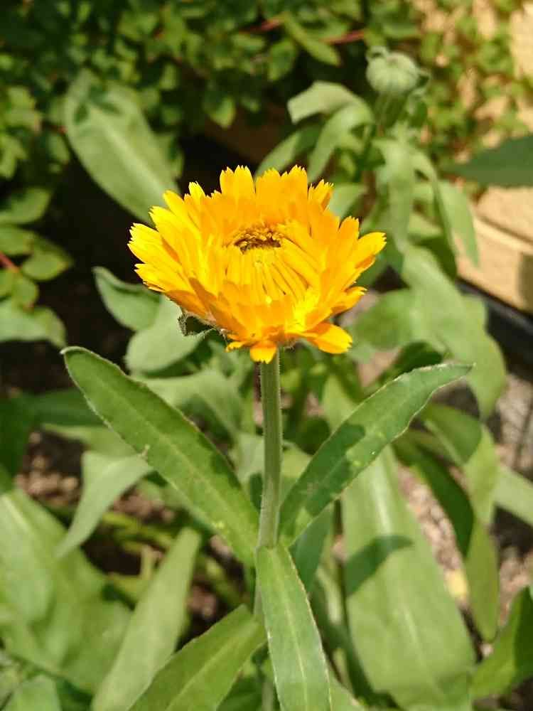自宅花壇の種から育てたキンセンカやっと今朝花をつけました🌻