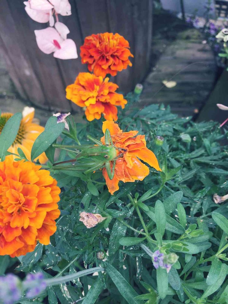職場で見つけたバッタちゃん☘️甘い香りに癒されてるのかな😊