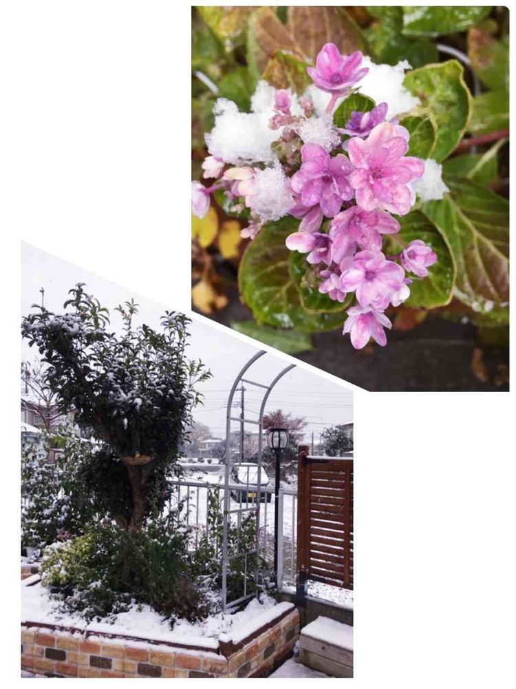 コラボねd(ŐдŐ๑)紫陽花も雨には慣れてるけど雪なんて初めてよ!!なっつさん身体冷やさないようにね(*˘︶˘*)