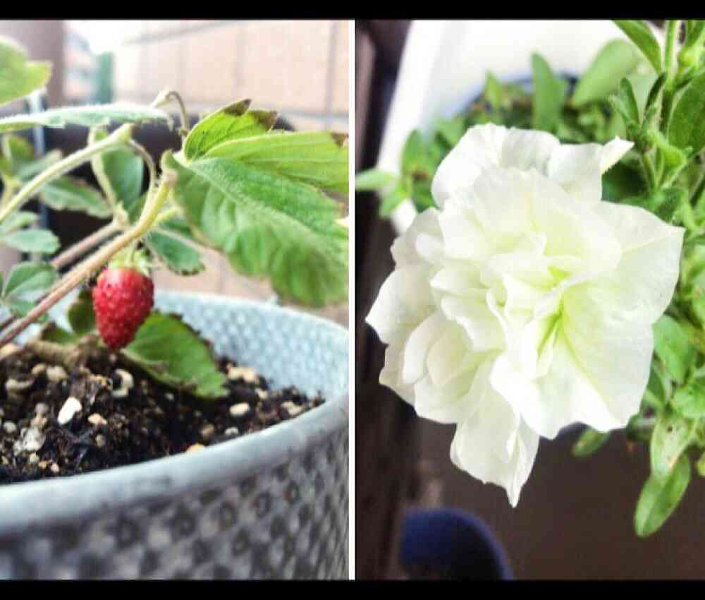 バルコニー/ベランダ,八重咲きペチュニア,ミニョネットストロベリーの投稿画像