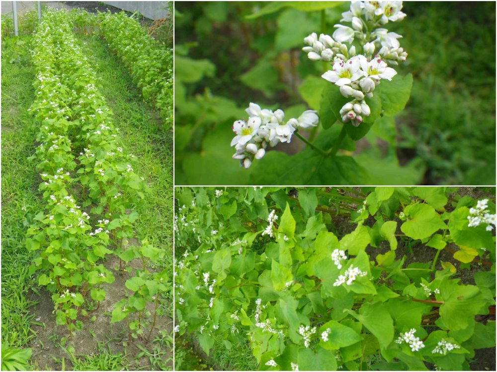 手打ち蕎麦店がいつも歩く歩道から1mくらいの空地に3うね蕎麦を栽培している。(^^♪