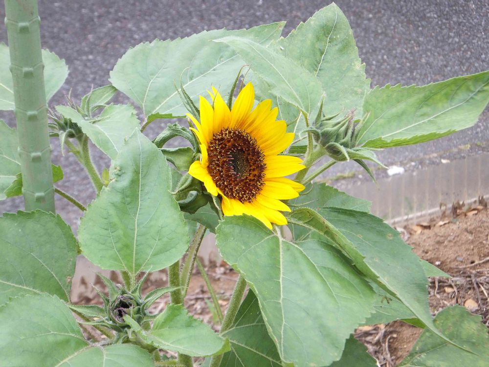 生まれたて(咲きたて)のひまわりを見つけ、パチリ