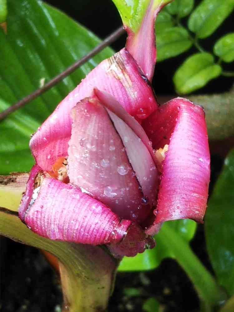 じめじめ大好きシダ祭り🏷️の途中ですが、ちょっと寄り道休憩して。うちのピンクバナナ(ベルチナバナナ🍌)が咲きました。下の方から咲いていきます(*´∀`)