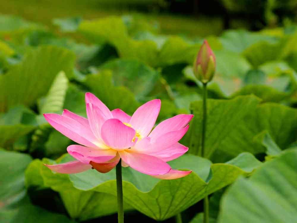 緑の葉っぱの中で、素敵なピンクの蓮の花、とっても映えますね😊素敵です💟💟