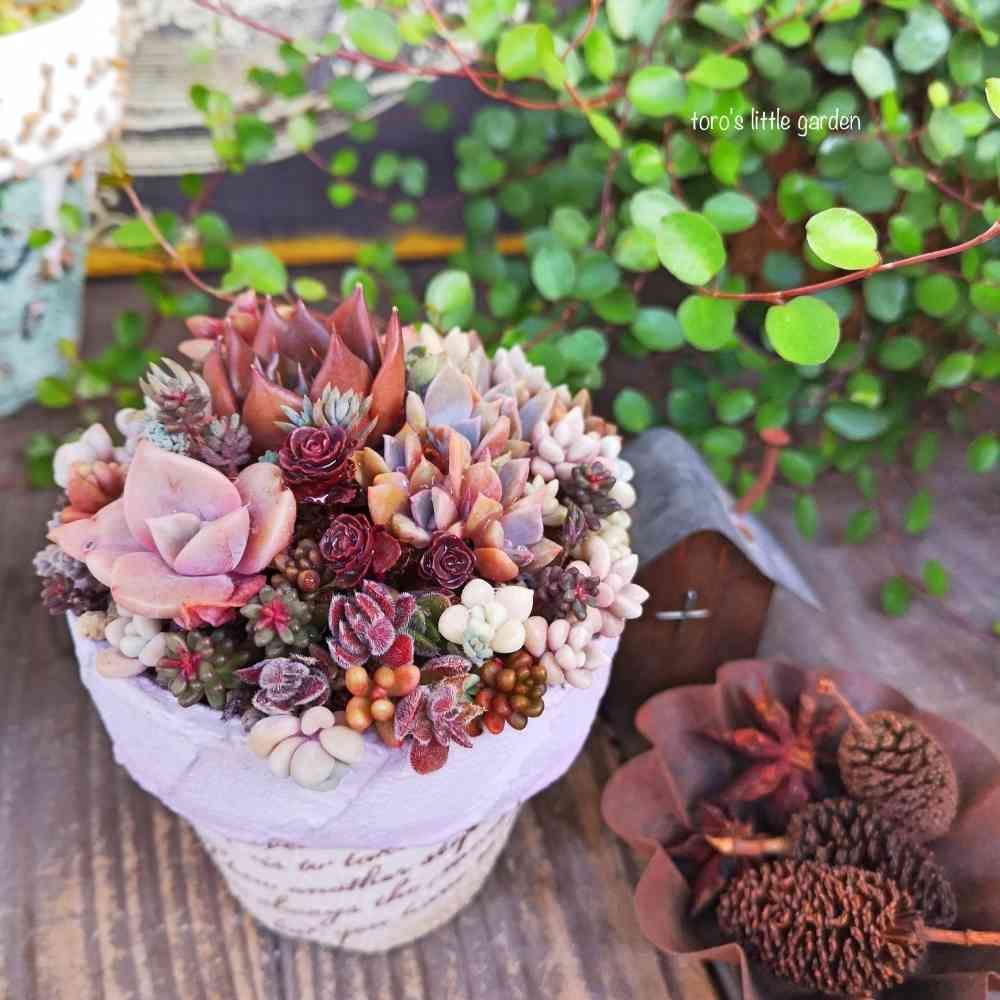 少し色味くすんだけど、渋い大人カラーのピンクでまとまったお気に入りの寄せ植えです♥
