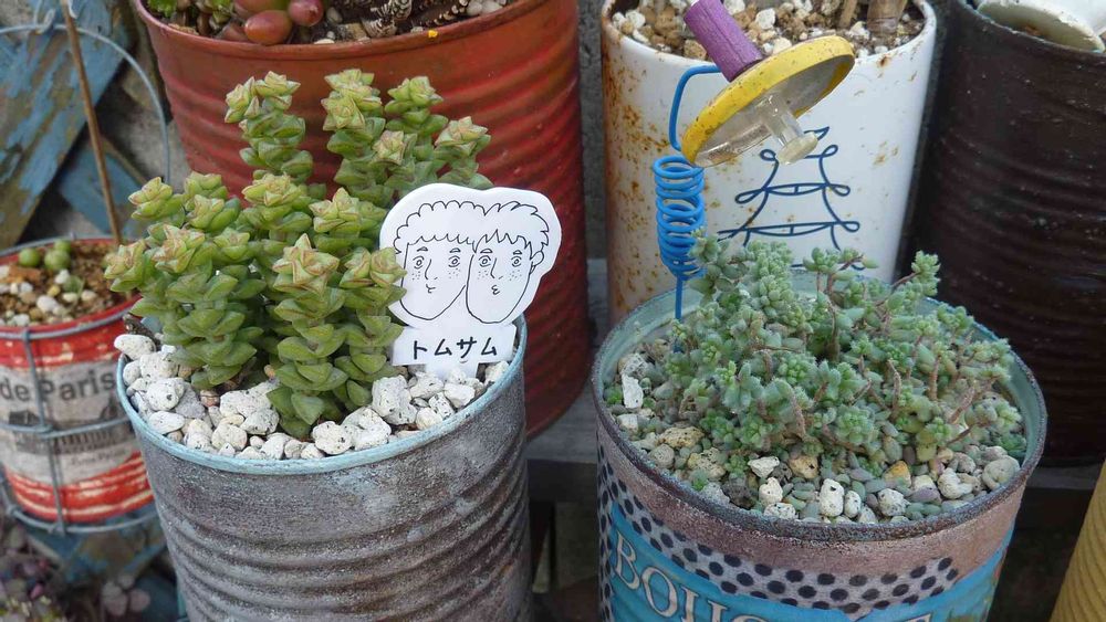 多肉のトムサム、巷で話題のトムサムピックをネットプリントしてプラバンで作りました。双子のアメリカ人高校生なんだよ~(*^_^*)