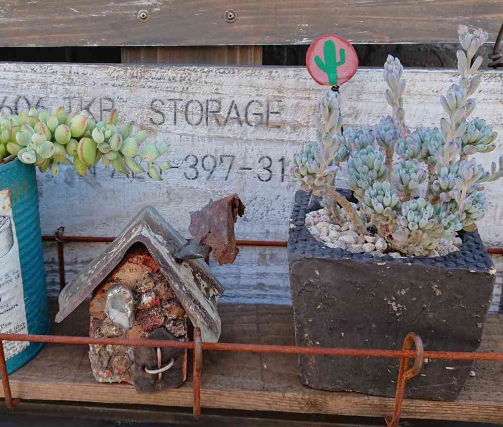 月初の駒ヶ根クラフトフェアでgetしたbeachさんの作品を多肉棚にON~♥.。.:*♡