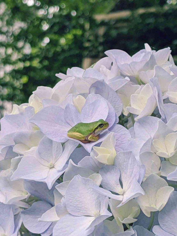 アジサイにカタツムリも絵になるけど🐸ケコたんもグー👍ですよね❣️