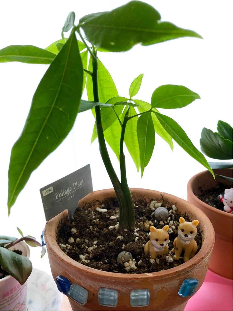 少し葉っぱが増えた‼️先月ダイソーさんからやって来たパキラさん。