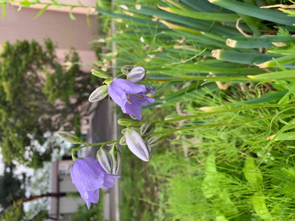 庭に楚々として咲き始めたのは、桔梗?カンパニュラ?