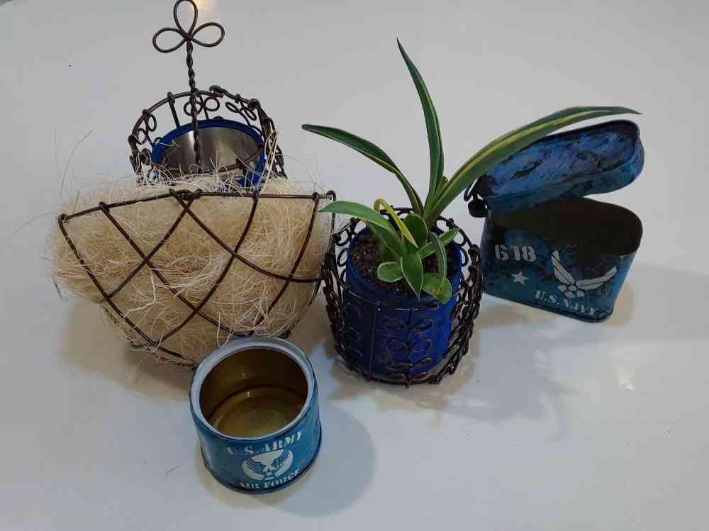 こないだ グリーンネックレスを頂いたOKiちゃんに ワイヤークラフトで 鉢カバーと リメイク鉢作ったよ〜 今日持って行くからねぇ(^^♪