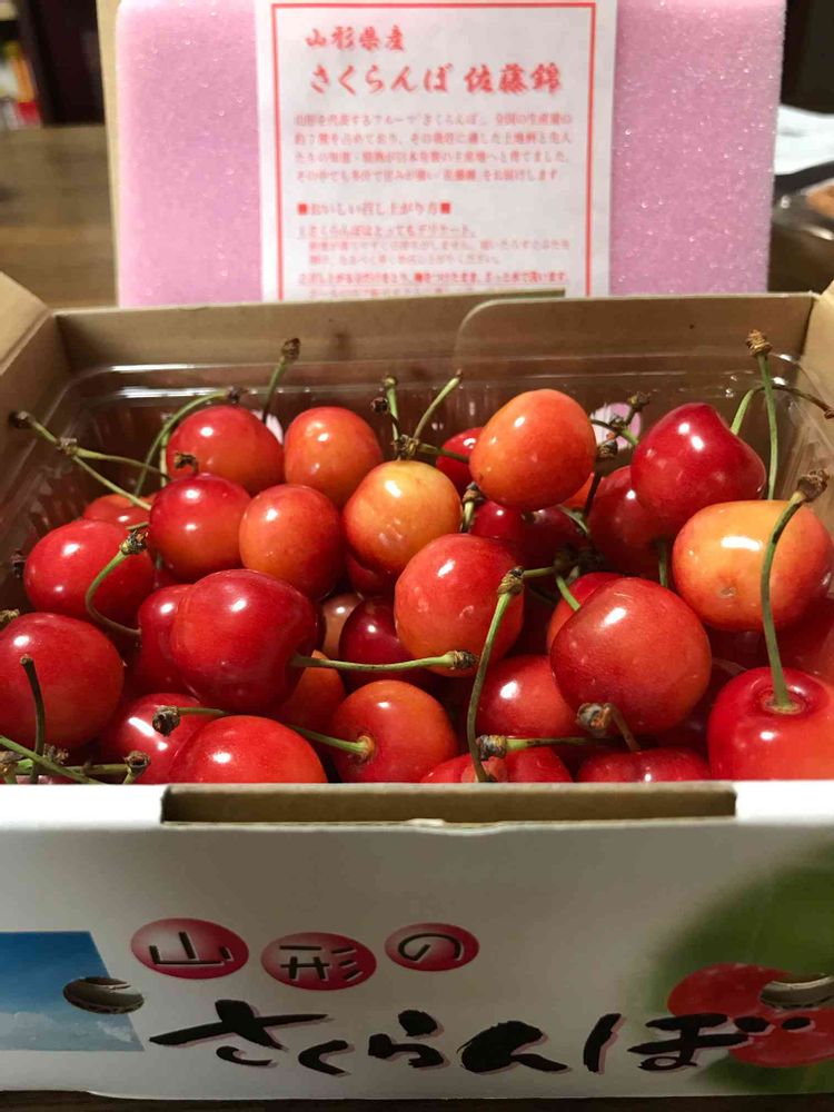 いつもスーパーで眺めるだけの佐藤錦が我が家に😱