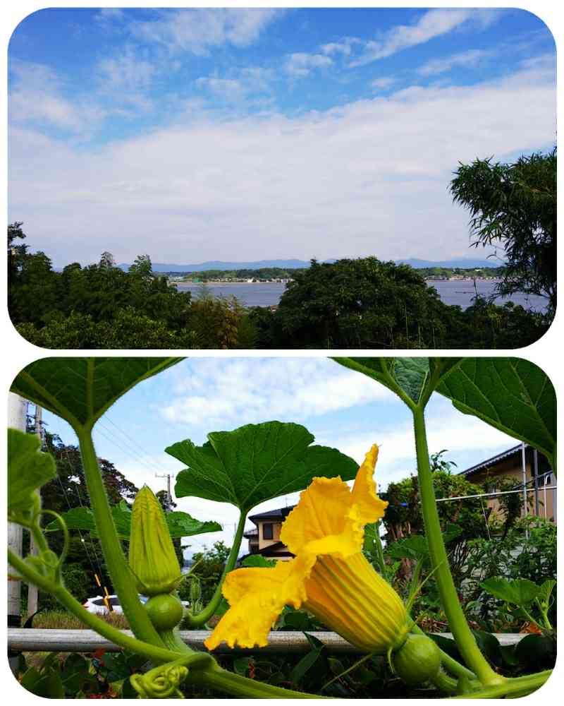 垣根の上まで伸びて咲いたカボチャ🎃の花