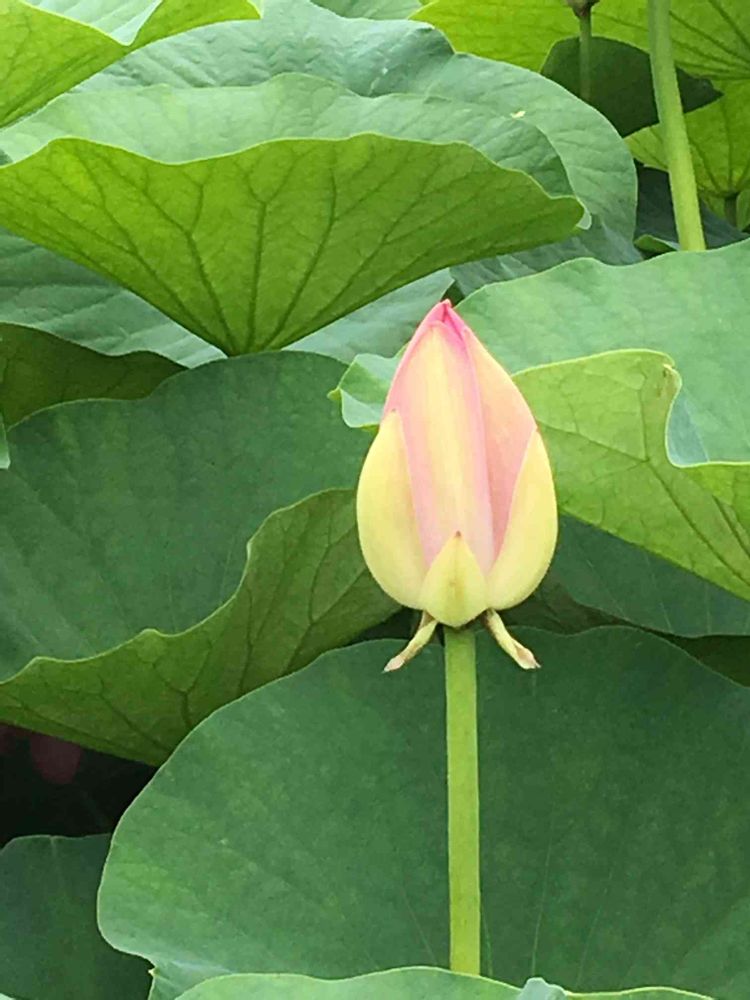 落合遺跡で発掘された、今から2000年以上前の古代のハスの実から発芽・開花したハスなのです。