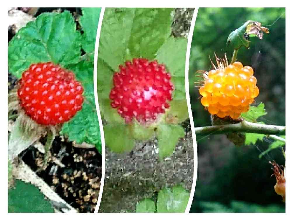 ネットで、モミジイチゴの存在は知っていたのですが、オレンジ色のイチゴに巡り会うことはないと思っていました。