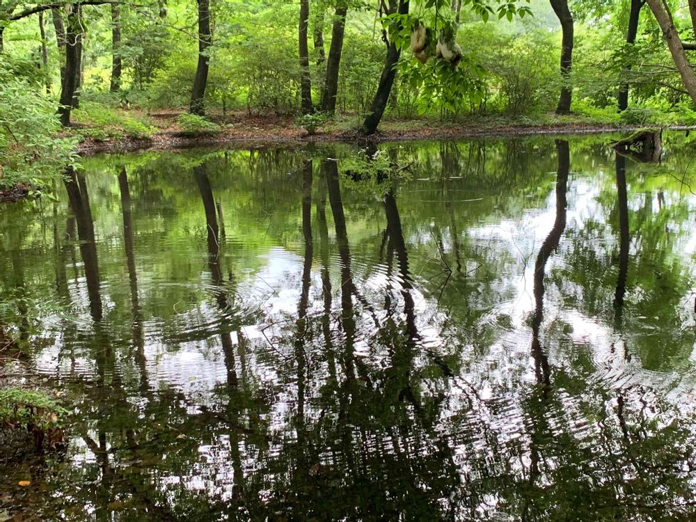 この池の周りにモリアオガエルの卵が産み付けられています。
