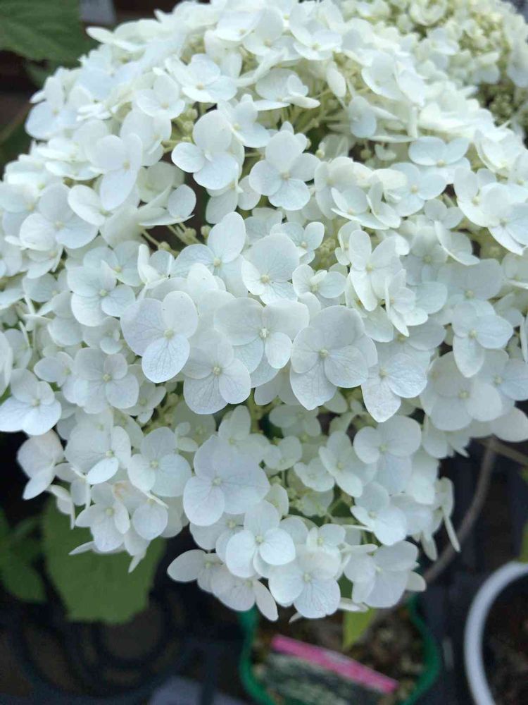 紫陽花アナベルという花で、アメリカ産の小さい花がたくさん咲く品種のようです✨